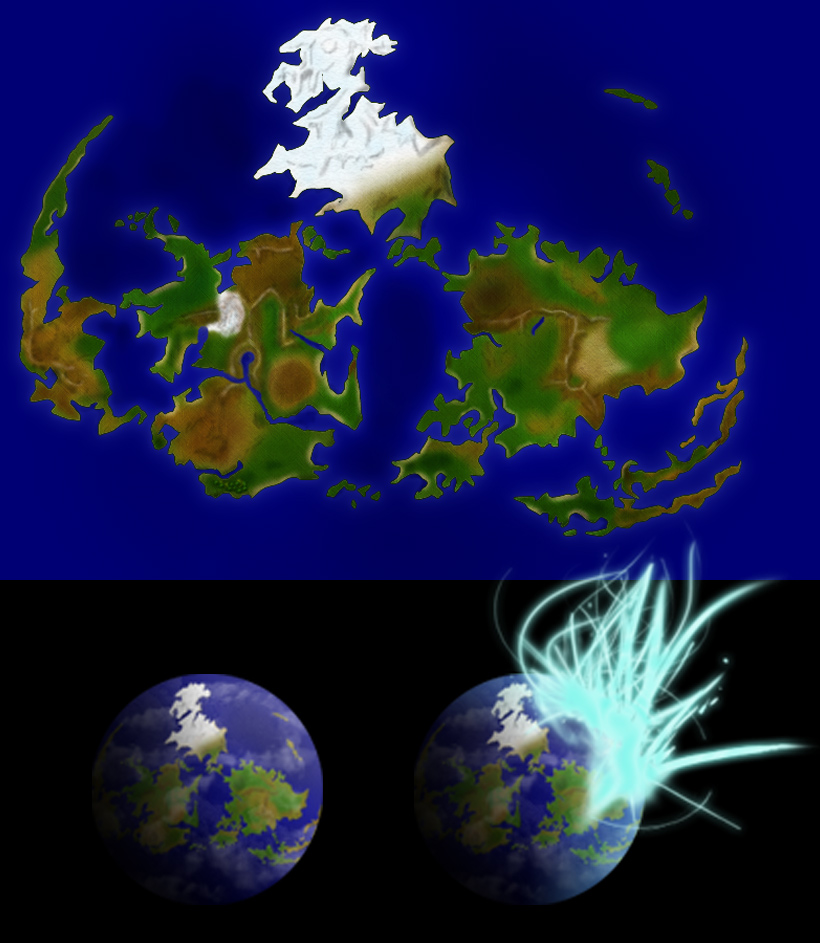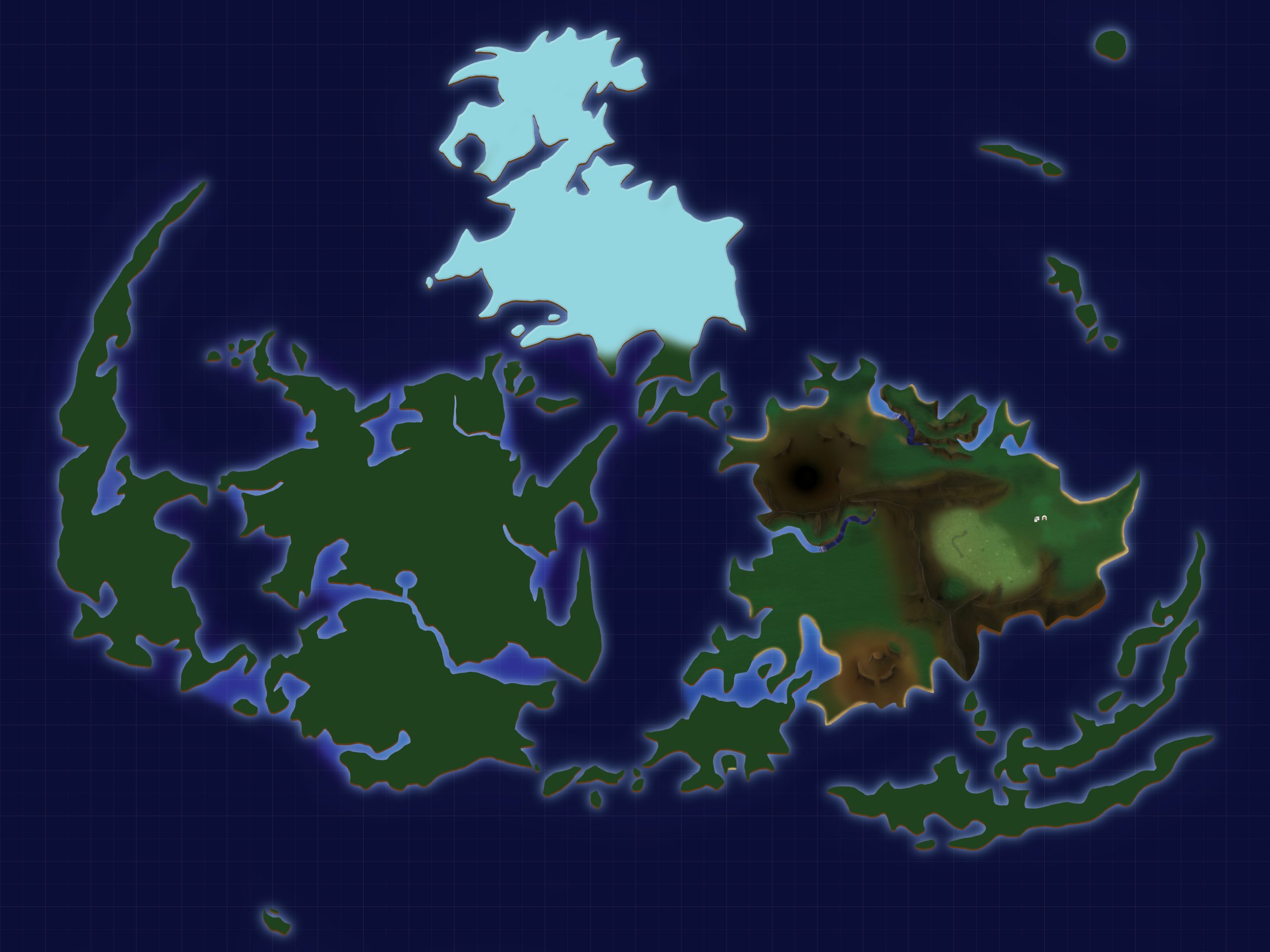 For this map, I just wanted a quick version of the FFVII map and then transform it into globe form. Then later added the Lifestream. Looking back on this, I’m actually quite surprised with the amount of details I had on the map since you could only see half of the land mass when transferred into the globe shape. I suppose if you were to quickly look at the top view of the map, you could potentially see which Final Fantasy map this would be.